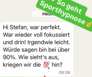„Hi Stefan, war perfekt. War wieder voll fokussiert unddrin! irgendwie leicht. Würde sagen bin bei über 90%. Wie siehts aus, kriegen wir die 100% hin?“